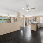 The open-plan kitchen is well equipped with a dishwasher and ample storage, while the internal laundry adds to the home’s practicality. Solar panels provide an energy-efficient advantage.