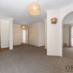 Inside, you’ll find three good-sized bedrooms, with the master featuring a walk-in robe. The bathroom includes a bath, shower, and separate toilet. The kitchen overlooks the rear garden and is equipped with ample cabinetry and a walk-in pantry, through to the dining area and with a lounge the offers views of the front yard.